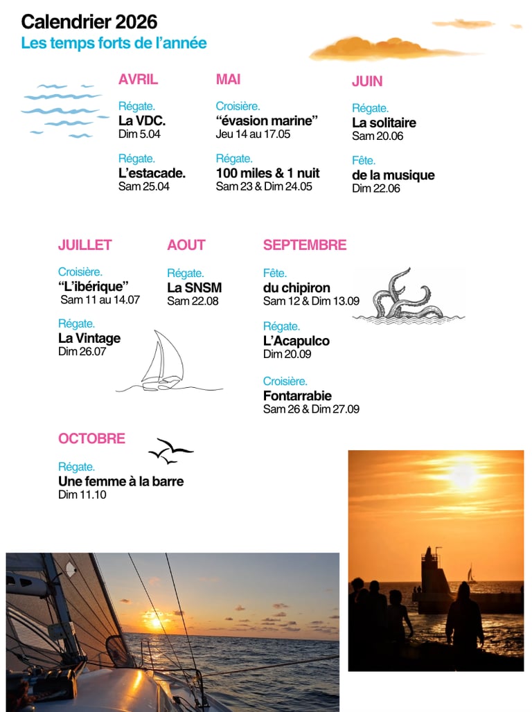 Calendrier des régates et des croisières 2026